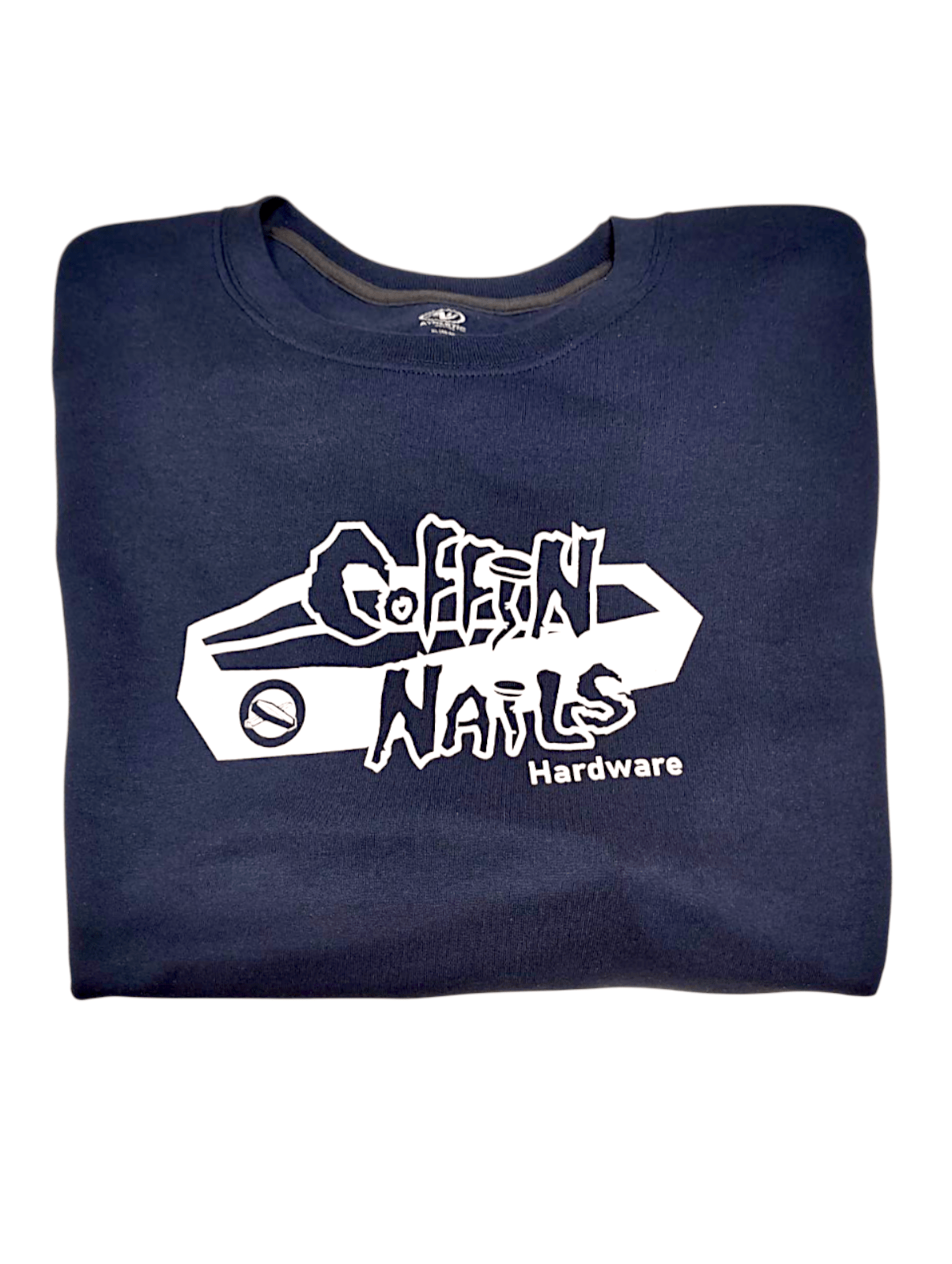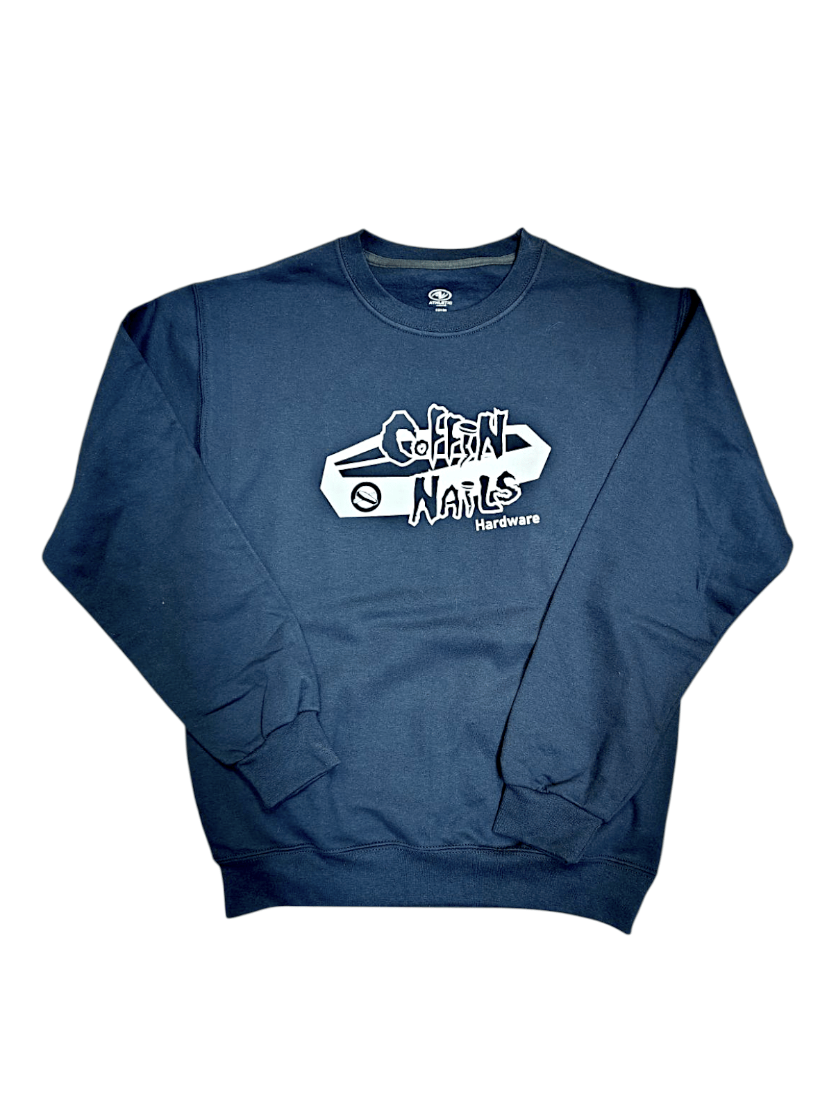 This is a navy Coffin Nails Hardware logo Crew neck Sweatshirt . Skate in style with this smooth looking chill sweatshirt.
